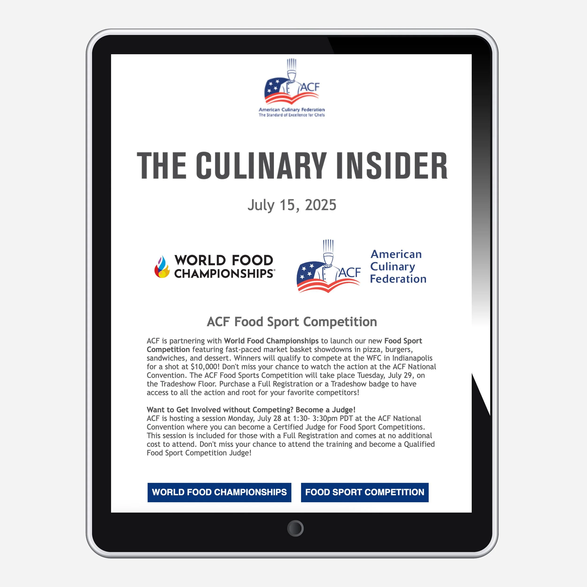 The Culinary Insider is a biweekly subscription e-newsletter that delivers timely, relevant news to more than 25,500 readers nationwide. Flexible and measurable advertising opportunities are available in every issue. Expand your digital reach and drive website traffic with advertising placements in The Culinary Insider - Contact us today to get started!